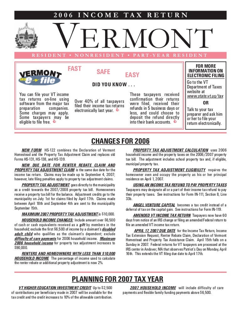 Before sharing sensitive information make sure youre on a state government site. IN-111 Vermont Income Tax Return. State government websites often end in gov or mil.